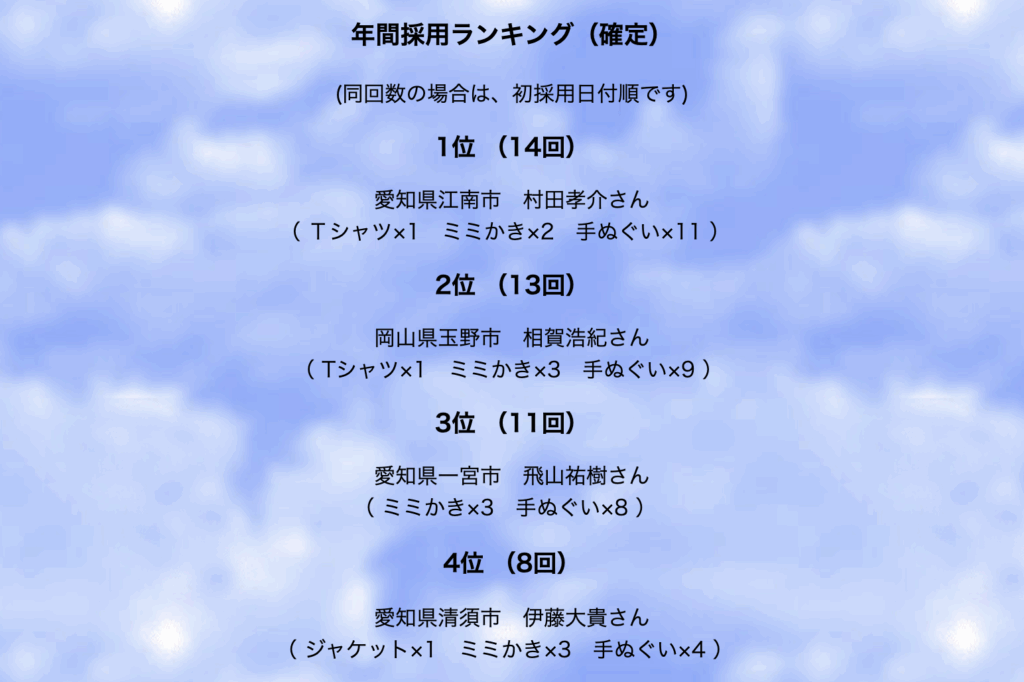 嬉しい反面、さすがに「そろそろ手ぬぐい欲しいな」とも思いました。