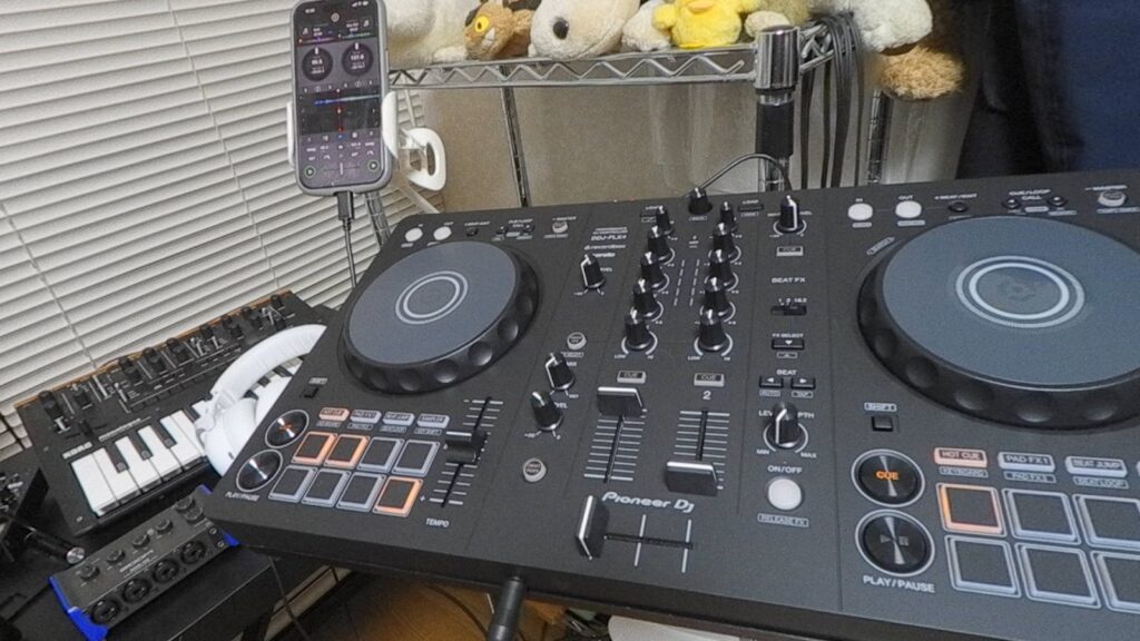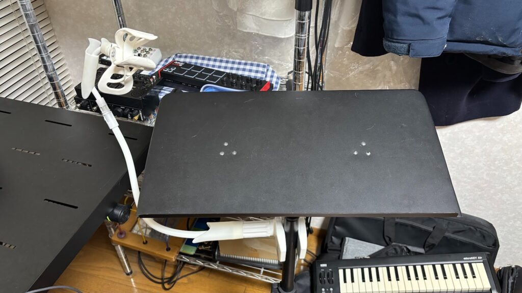 昔買ったスマホホルダーを機材スタンドにロックして……